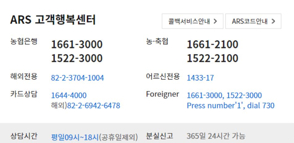 농축협 잔액조회 전화번호 : 1522-2100, 1661-2100