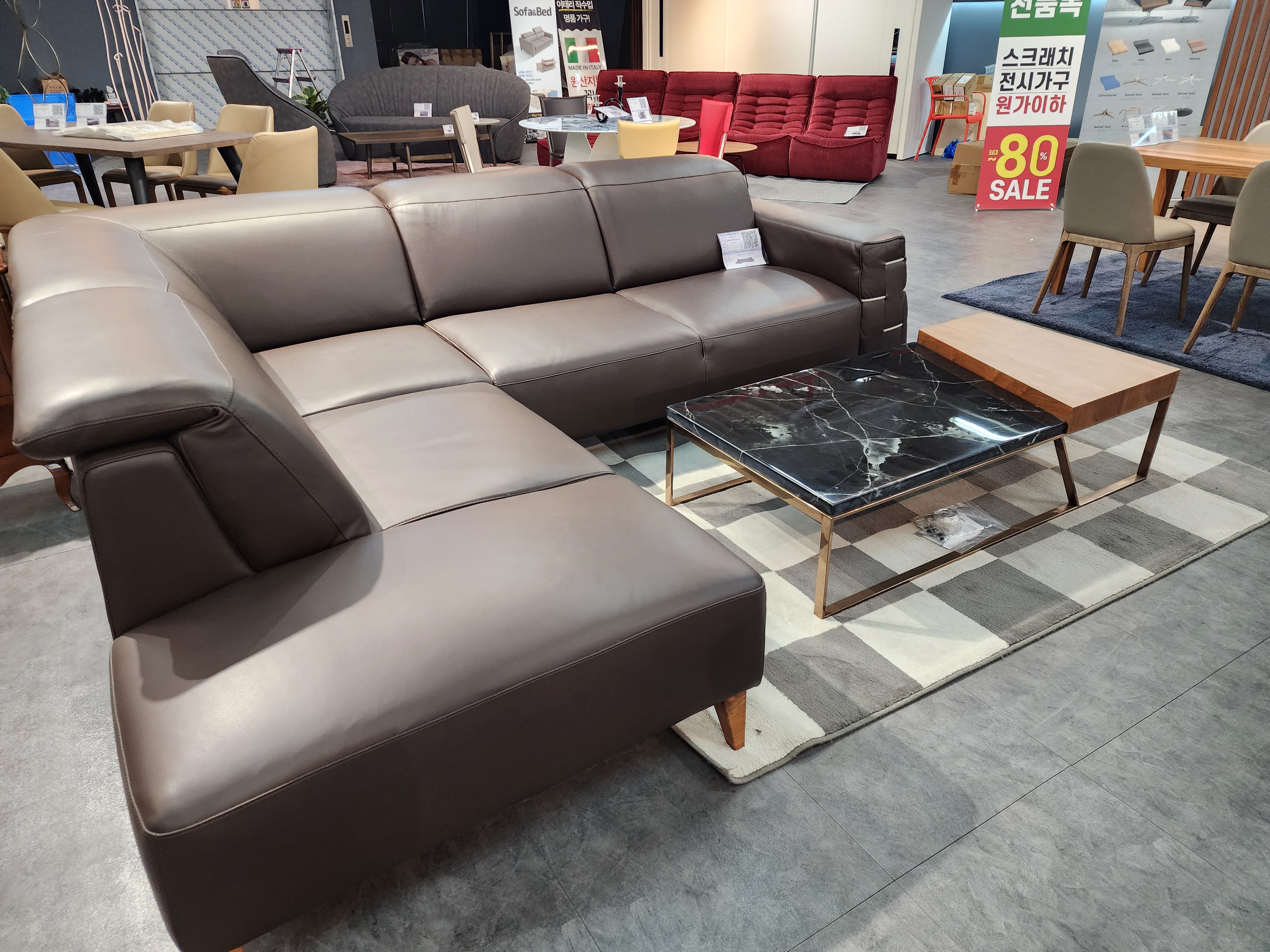 2층에는 기획특가 할인존으로 소파, 책장, 장식장, 옷장, 서랍장, 티비장 등이 진열되어 있었고, 다양한 디자인과 색감의 소파가 가득, 비건 레더 소파부터 스윙 기능이 탑재된 무빙 소파까지 기능성 제품도 많아 놀랐어요. 무엇보다 실제로 앉아보고 비교할 수 있는 공간들이 잘 마련되어 있어 더욱 믿음이 갔습니다.