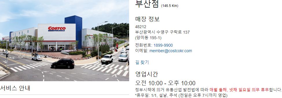 부산 코스트코 영업시간과 휴무일에 대한 정보 입니다.
