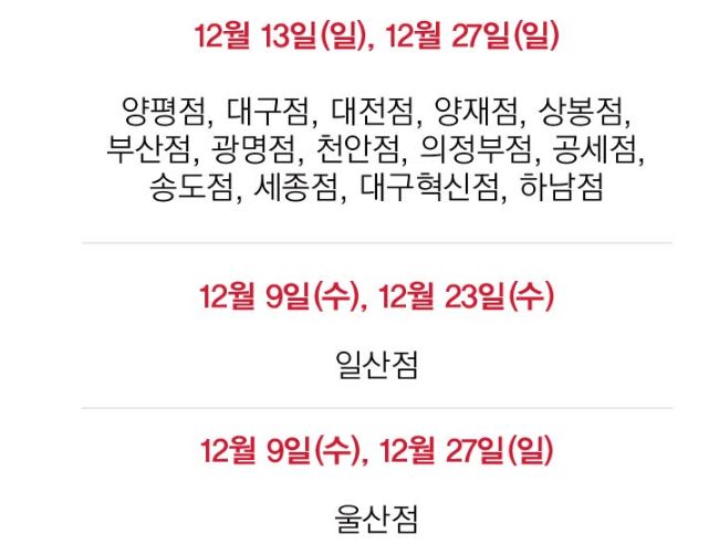 부산 코스트코 12월 휴무일은 12월13일 일요일, 12월27일 일요일입니다.